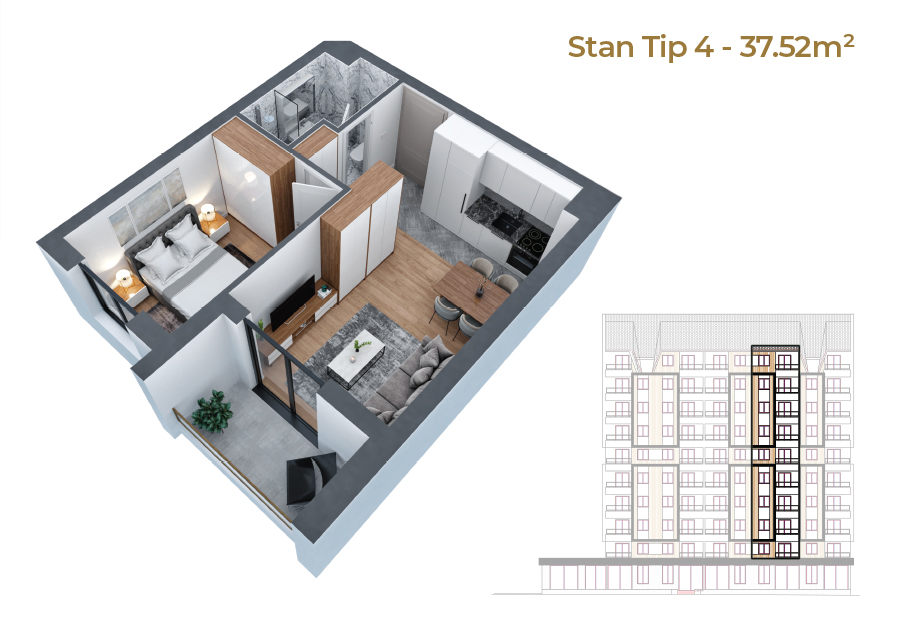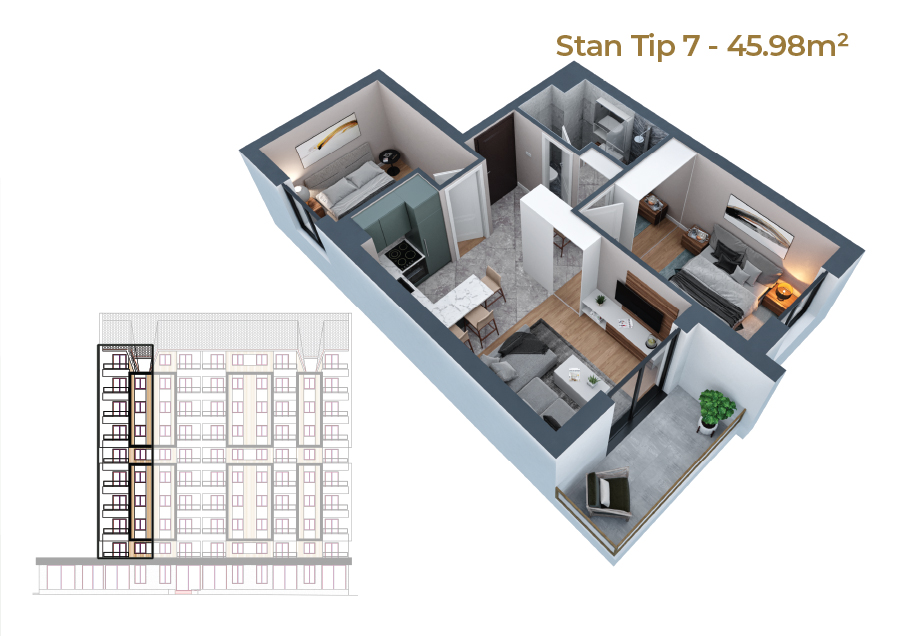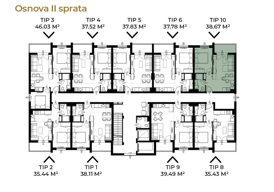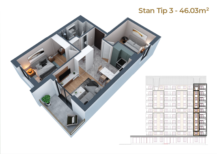 U okviru ovog objekta posedujemo sjajnu ponudu stanova različitih tipova i kvadrature. U nastavku možete da pregledate koje sve tipove stanova imamo u ponudi i da se opredelite za neki od njih.